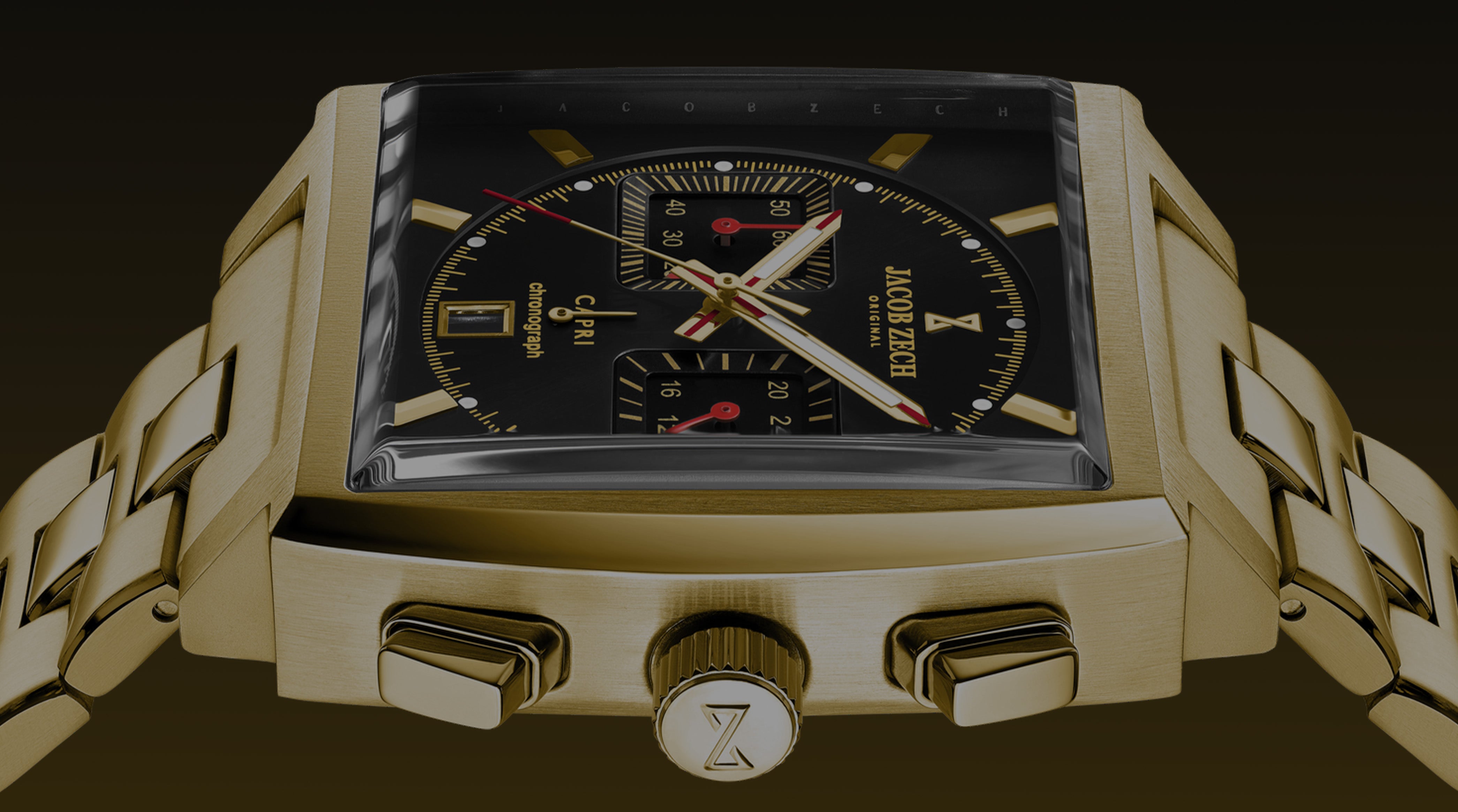 The Capri Series features bold square chronograph watches with a distinctive design, created for those who prefer a statement piece with precise timing functionality.
